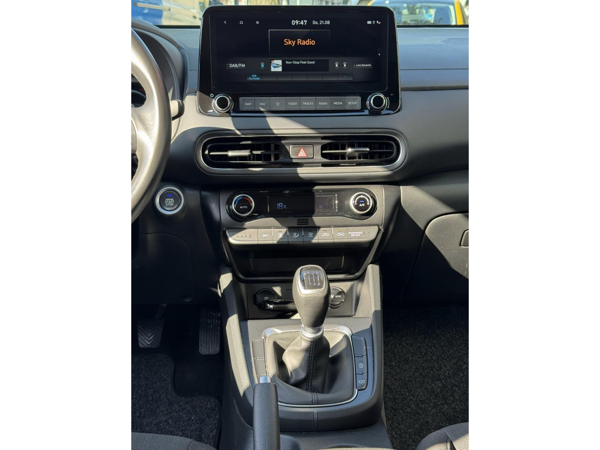 De Kona wordt aangedreven door een 1.0 T-GDI driecilinder benzinemotor (120 PK, 998 cc) met elektrische ondersteuning van 8 kW (11 PK). In combinatie met de handgeschakelde zesversnellingsbak levert dit soepele prestaties: een topsnelheid van 180 km/u en een acceleratie van 0–100 km/u in 11,9 seconden. Tegelijkertijd rijdt u efficiënt, met het voordeel van hybride ondersteuning.