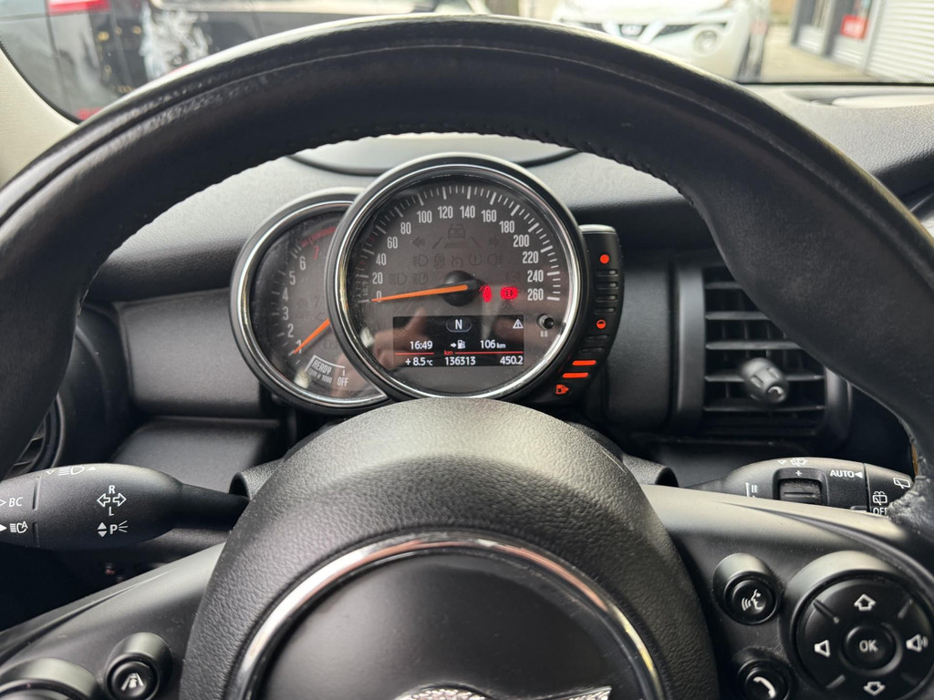 De Mini is uitgerust met moderne rijassistentie. Met adaptive cruise control houdt de auto zelf afstand tot uw voorligger, ideaal voor ontspannen rijden. Het navigatiesysteem met harde schijf wijst u altijd feilloos de juiste weg. Via de stuurwielbediening bedient u moeiteloos het audiosysteem. Parkeersensoren maken inparkeren eenvoudig, terwijl automatische verlichting en een regensensor u onderweg werk uit handen nemen. Verder profiteert u van een lederen sportstuur, airconditioning, buitentemperatuurmeter, automatisch dimmende buitenspiegels, isofix en usb-aansluiting.