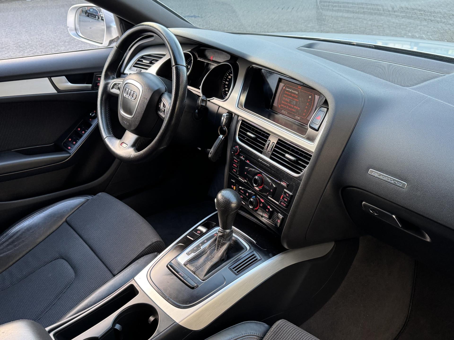 Het spreekt voor zich dat een auto als deze ook van electronic climate control is voorzien. U kunt bij het inparkeren natuurlijk niet aan alle kanten ogen hebben. Daarom is deze Audi A5 Sportback voorzien van parkeersensoren! Het luxeniveau in deze Audi is niet alleen gericht op comfort, maar ook op uw veiligheid. Tal van sensoren helpen u om de omgeving in de gaten te houden. De automatisch inschakelbare verlichting zorgt dat automatisch de verlichting wordt ingeschakeld als het donker wordt, wat bijvoorbeeld in tunnels erg handig is. En de regensensor zet de ruitenwissers aan zonder dat u eraan hoeft te denken. Voorzien van cruise control, dus vriendelijk voor de inzittenden én de benzinetank. Met navigatiesysteem, audiobediening op het stuur, buitentemperatuurmeter, automatisch dimmende binnenspiegel, isofix-aansluiting en centrale portiervergrendeling is deze auto helemaal compleet.