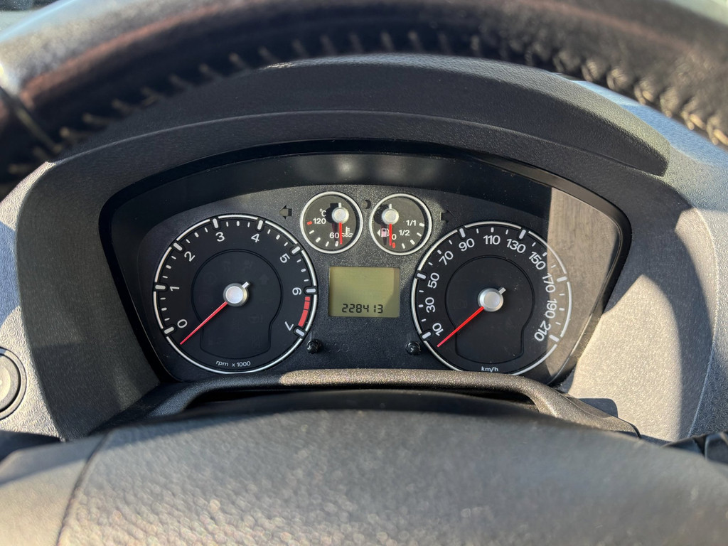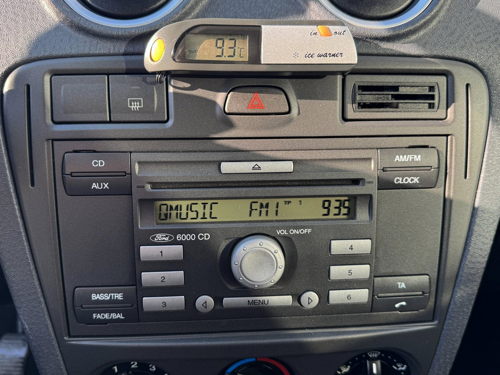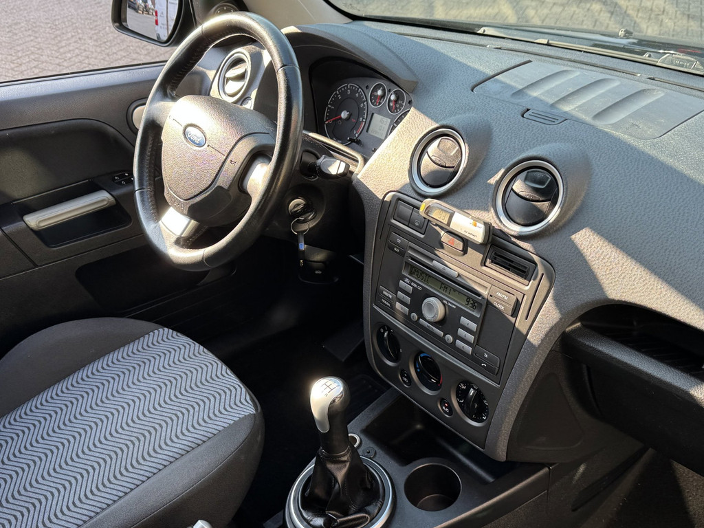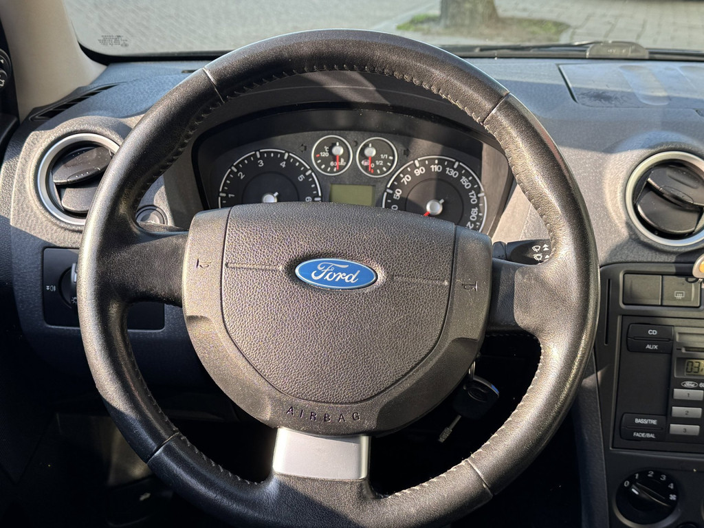 Met één druk op de knop blaast de airconditioning een koele bries door het interieur. De uitrusting van deze Ford is met buitentemperatuurmeter, lederen stuur, centrale deurvergrendeling met afstandsbediening, bekerhouder en lederen versnellingspook behoorlijk compleet.