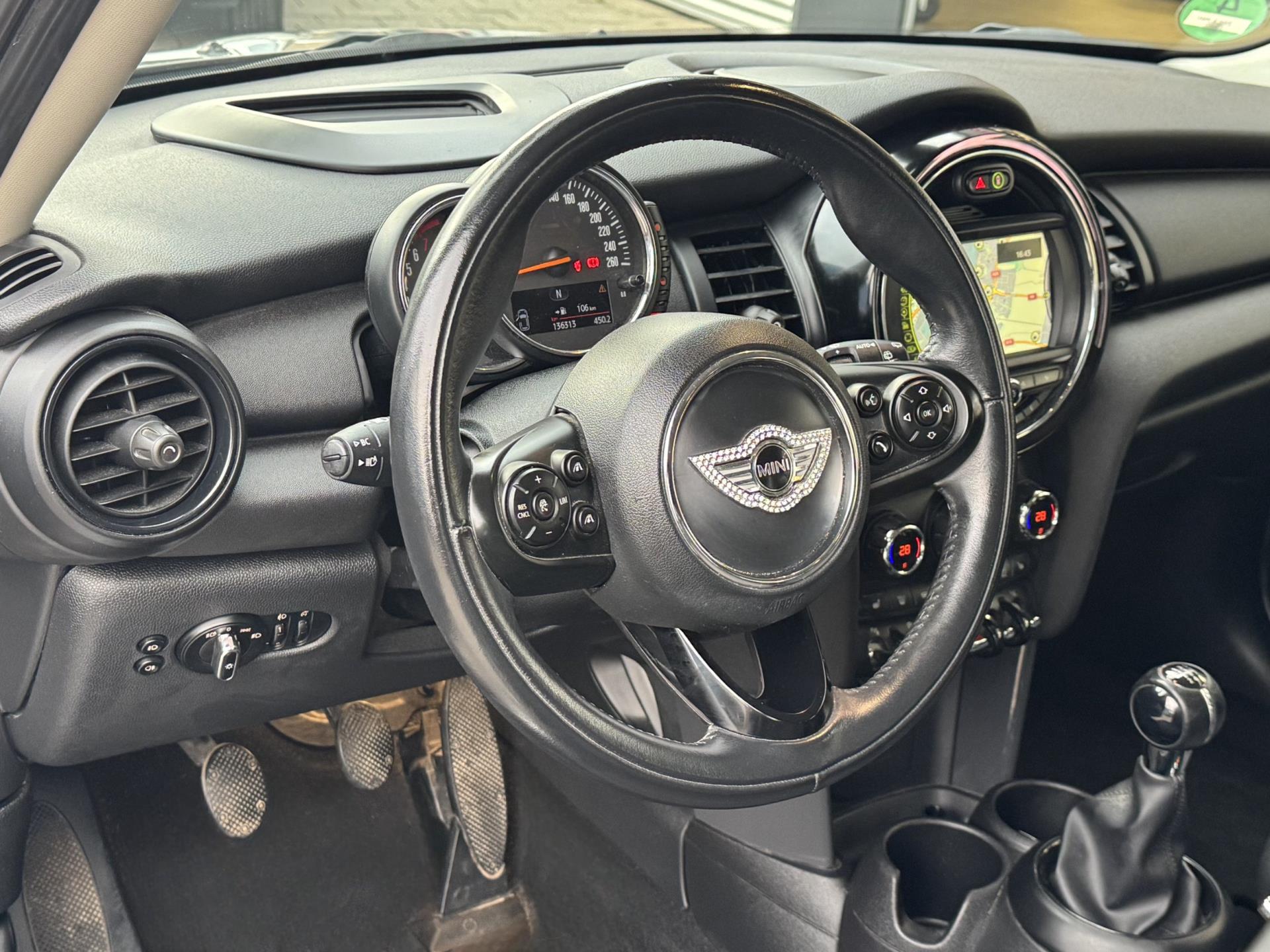 De Mini is uitgerust met moderne rijassistentie. Met adaptive cruise control houdt de auto zelf afstand tot uw voorligger, ideaal voor ontspannen rijden. Het navigatiesysteem met harde schijf wijst u altijd feilloos de juiste weg. Via de stuurwielbediening bedient u moeiteloos het audiosysteem. Parkeersensoren maken inparkeren eenvoudig, terwijl automatische verlichting en een regensensor u onderweg werk uit handen nemen. Verder profiteert u van een lederen sportstuur, airconditioning, buitentemperatuurmeter, automatisch dimmende buitenspiegels, isofix en usb-aansluiting.