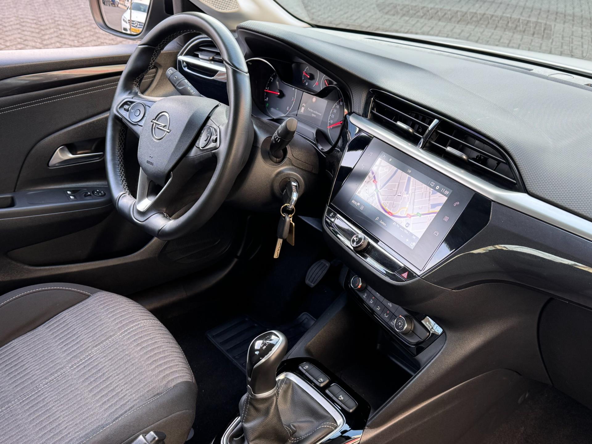 Als u 'm vraagt 'hoe gaat het?' geeft deze auto zelf het antwoord. Via de app op uw smartphone. U checkt de meters waar u maar wilt, of activeert diverse functies alvast. Altijd een deskundige gids aan boord, dankzij het navigatiesysteem. Met de DAB-ontvanger luistert u naar glasheldere digitale radio. Parkeerplekken worden er niet ruimer op. Maar met de aanwezige parkeersensoren krijgt u deze Opel Corsa zonder problemen op z'n plaats. Achter het stuur van deze Opel bent u niet alleen. De auto kijkt als het ware met u mee tijdens de rit. De regensensor schakelt de ruitenwissers in als het nodig is en de automatisch inschakelbare verlichting doet de lichten voor u aan. Extra opties op deze auto zijn: cruise control, airconditioning, buitentemperatuurmeter, lederen stuur, isofix-aansluiting en usb-aansluiting.