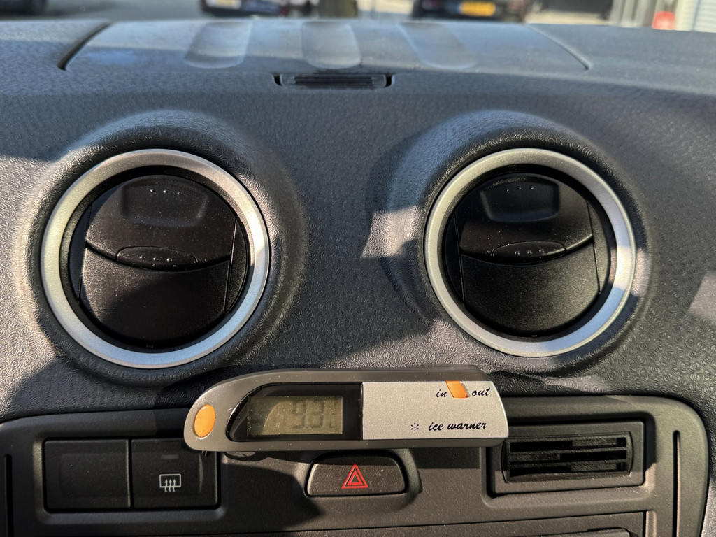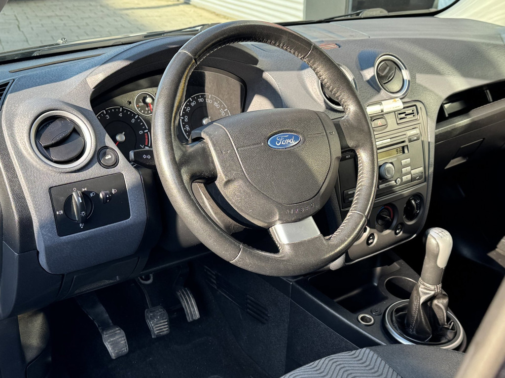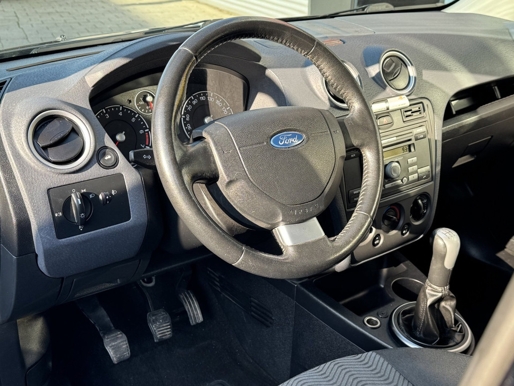 Met één druk op de knop blaast de airconditioning een koele bries door het interieur. De uitrusting van deze Ford is met buitentemperatuurmeter, lederen stuur, centrale deurvergrendeling met afstandsbediening, bekerhouder en lederen versnellingspook behoorlijk compleet.