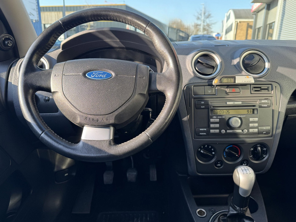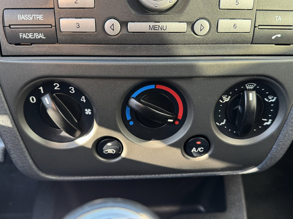 Met één druk op de knop blaast de airconditioning een koele bries door het interieur. De uitrusting van deze Ford is met buitentemperatuurmeter, lederen stuur, centrale deurvergrendeling met afstandsbediening, bekerhouder en lederen versnellingspook behoorlijk compleet.