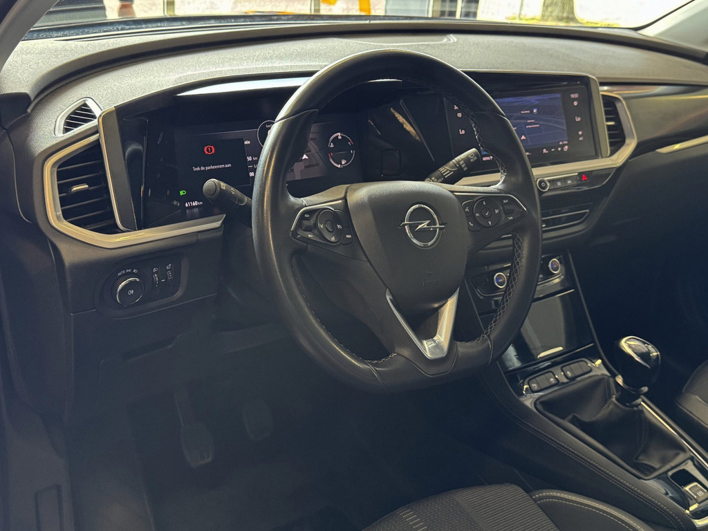 Ervaar de wonderen van de digitale mobiliteitswereld waarbij alles wat u wenst op het digitale dashboard verschijnt. Een optie die de veiligheid verhoogt, is de bediening vanaf het stuur van het audiosysteem (met dab-radio!). Electronic climate control verwarmt of koelt het interieur met een druk op de knop. Een plekje vinden in de binnenstad is één, inparkeren is twee. Voor dat laatste heeft deze Opel Grandland prima parkeersensoren die u een handje helpen. Het hoort bij een intelligente auto als deze dat hij zelf in staat is om zijn omgeving in de gaten te houden. Dat doet deze Opel met een automatisch inschakelbare verlichting en een regensensor. De uitrusting van deze auto is met lederen sportstuur, cruise control, keyless Go, automatisch dimmende binnenspiegel, isofix-aansluiting en usb-aansluiting behoorlijk compleet.