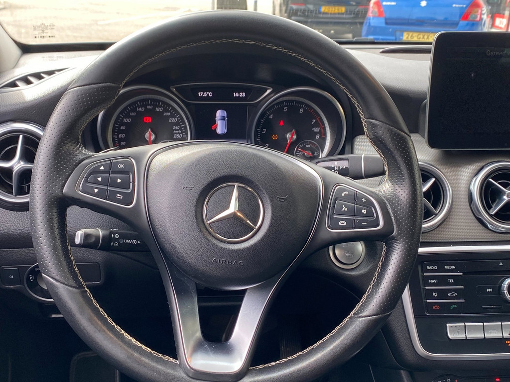 Met een gerust hart achteruitrijden? Dat kan, dankzij de achteruitrijcamera. Deze Mercedes-Benz GLA-klasse is 'connected'. Belangrijke functies worden permanent gemeten en zijn uit te lezen via een speciale app, ook op afstand. Nooit meer de weg kwijt: daarvoor zorgt het onboard navigatiesysteem. Dankzij automatische airconditioning is het interieur behaaglijk warm of verfrissend koel. Veilig en handig: het audiosysteem laat zich bedienen vanaf het stuur. Deze Mercedes-Benz is voorzien van sportstuur met schakelpaddels, regensensor, cruise control, keyless entry, buitentemperatuurmeter en automatisch dimmende binnen- en buitenspiegels.